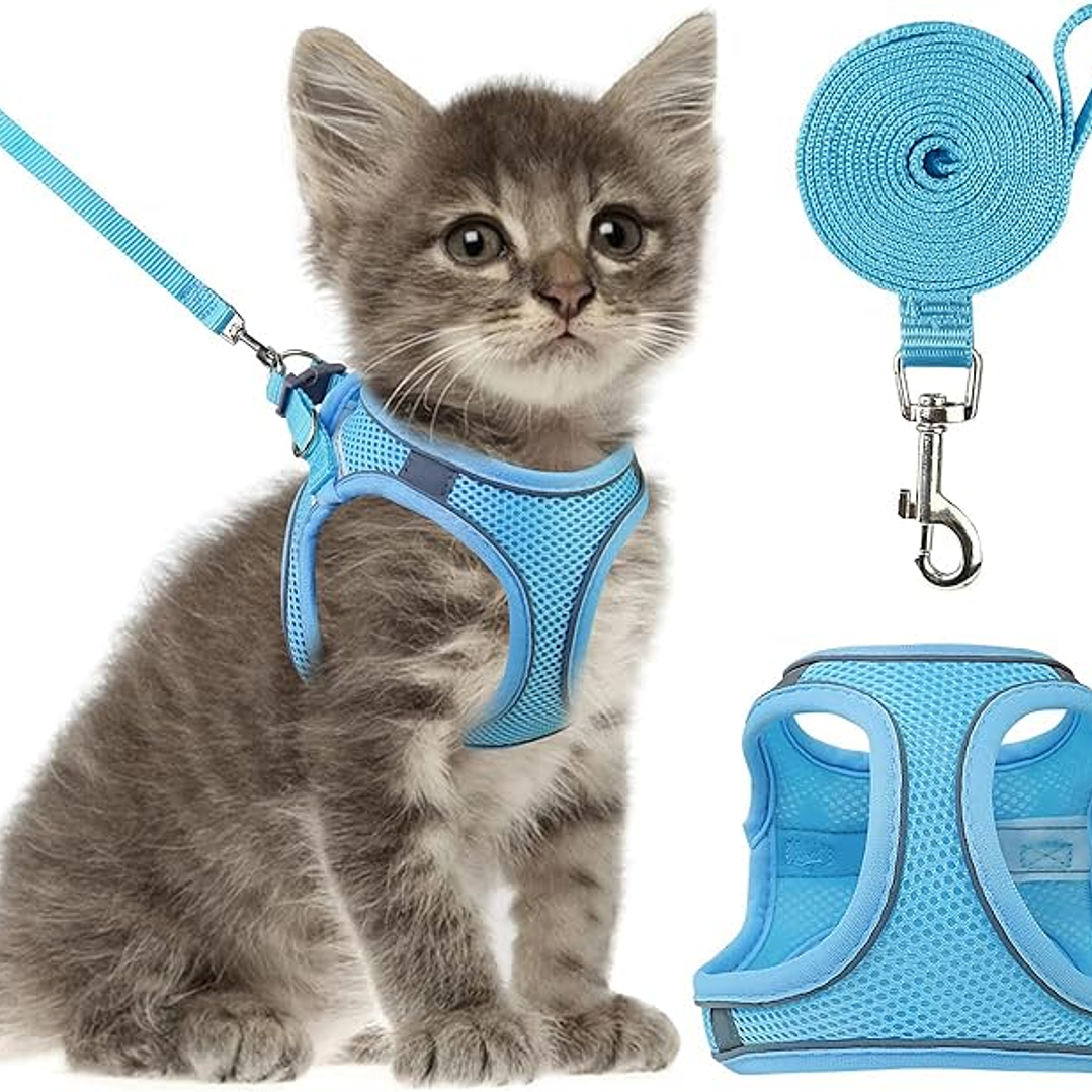 Arnés con correa para gato, chaleco ajustable, malla de poliéster, transpirable, reflectante, antiescape